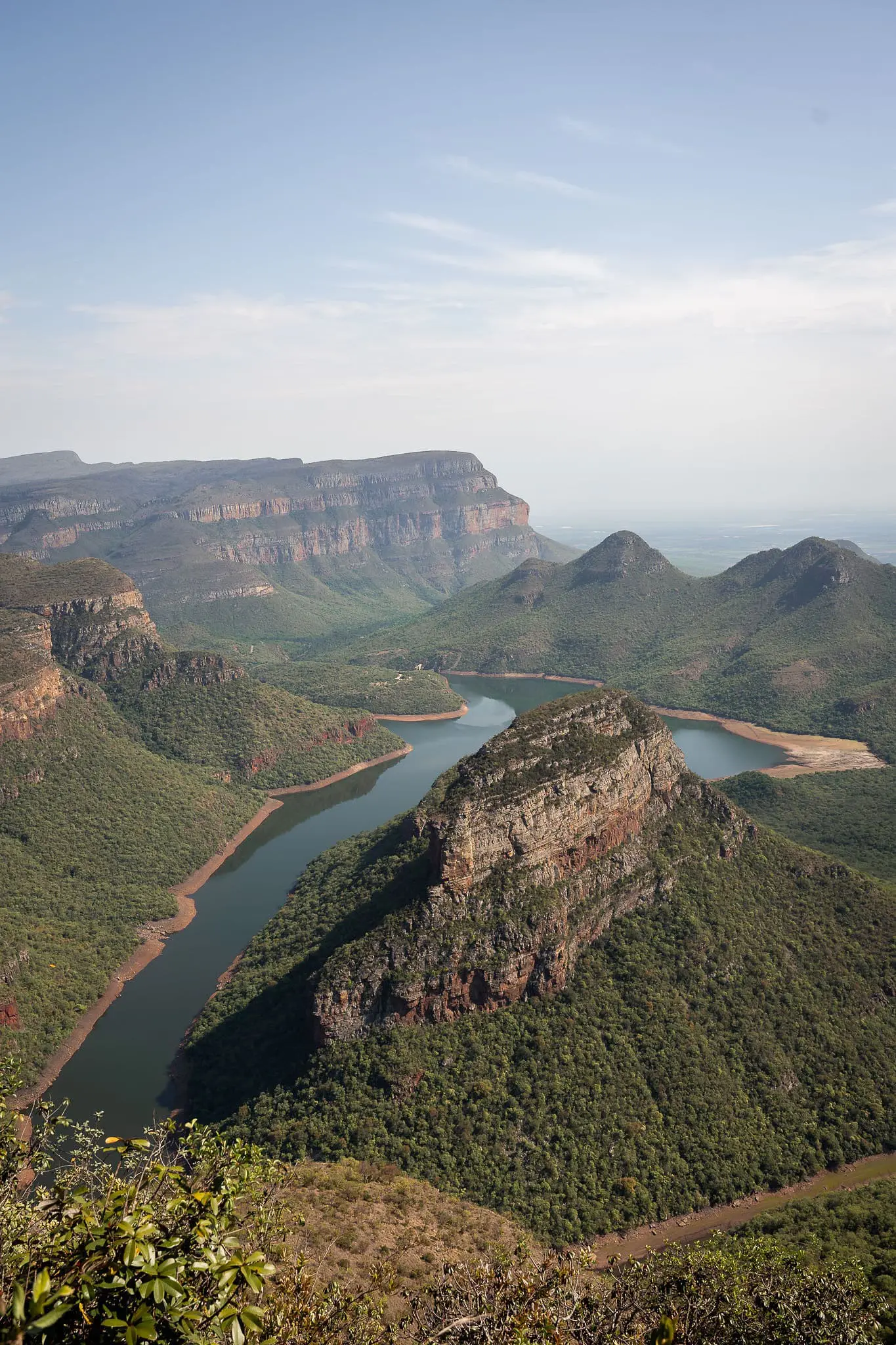The most famous viewpoint is Three Rondavels, where you can gaze over three rock formations that look like traditional African huts. The river winds deep below through the canyon, and on a clear day, you can see the Lowveld stretching out to the horizon in the distance.
