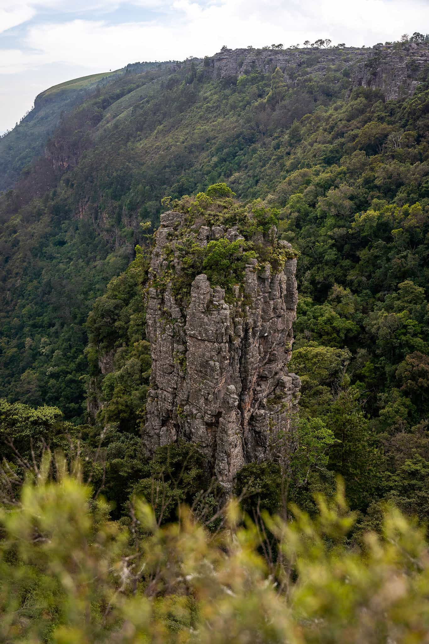 The stairs down lead you through a rainforest filled with ferns and moss, where it always feels a bit misty. The contrast with the dry Lowveld below makes this spot special. Early in the morning, there's often a blanket of clouds beneath you, making you feel like you're literally above the clouds.